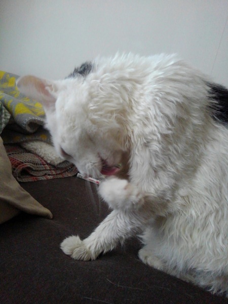 お風呂上りは写真のように必至こいて毛づくろいしていました