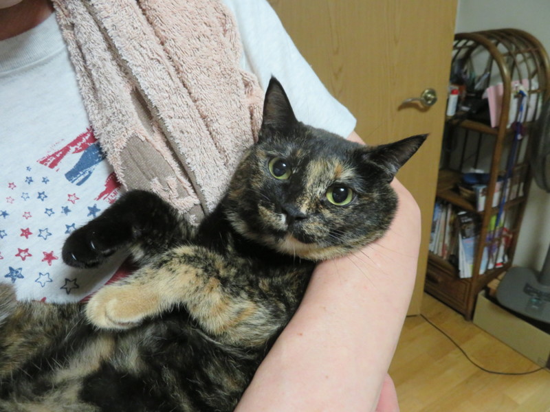 やっと忙しさから解放されたパパッチが、やさ~~しく抱っこしてくれたの。やっぱり、私のことが大好きなんだわ。しばらくブラシもしてもらう時間がなかったんだけど、ここ数日、まず、ゆっちゃんからって言って、コタより先に、気持ちよくブラシしてくれるの。さすがパパッチ、上手なのよ。