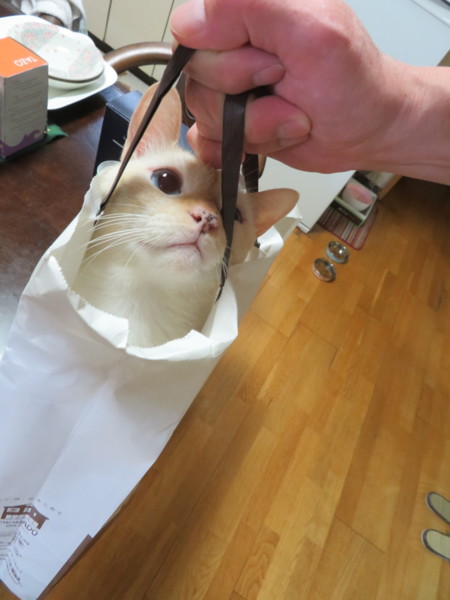 初盆参りでたくさんたまった紙袋にボクをいれて、「袋入りネェコォ~~」とか言って、はしゃいじゃってさぁ~~おやじ。ユッチ姐と扱いがちがいすぎるだろ???