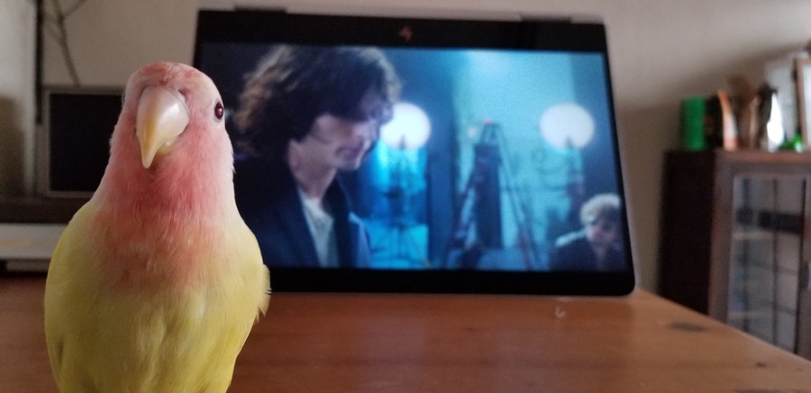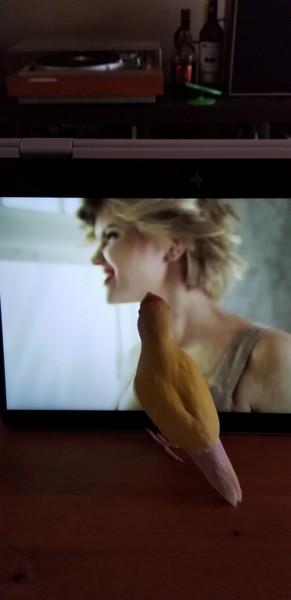 肩に留まっていたてんちゃんを試しにディスプレイ前に降ろしてみたらご機嫌でした。