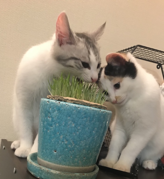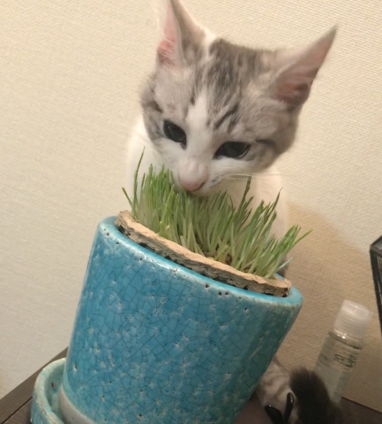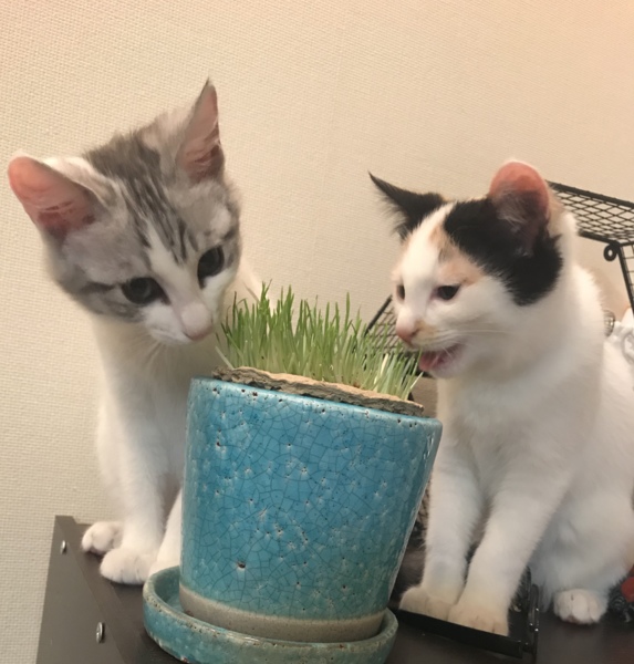 だからってわけでもないのですが、猫ちゃんたちには猫草をあげてみました(*^◯^*)