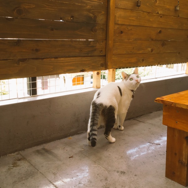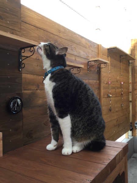 昨年夏にベランダを改装し、猫たちに開放しています。