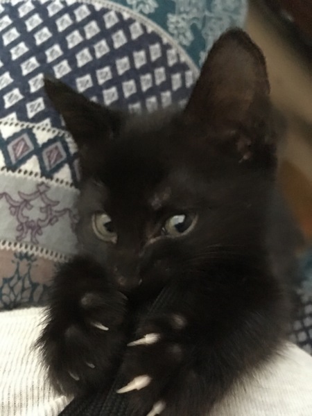 トムさんとは初日から関係良好で一緒に寝たりもするし、ご飯も何をするのも全部真似っこです。それもあってかトイレは大小とも、私達から何を教えるもなく4日ほど前から完璧に出来る様になりました。これは多頭飼いならではですよね。上手な先輩がいるとほとんどの場合、後輩さんは彼らを見て覚えていくし、少し口うるさい先輩がいると、埋め方までレクチャーされます。てっちゃんはトムさん達用の大人のトイレをずっと覗き込んでいて、偉かったですよ。子猫の興味本位かもしれないけど大事なことです。
