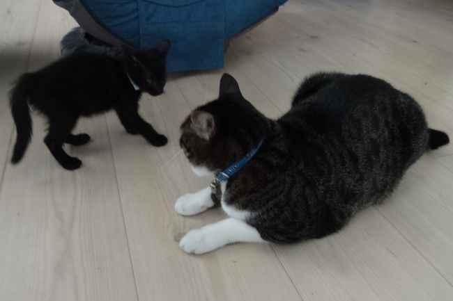 てっちゃんが早くもサッサと階段を上り下りするようになってしまい、滑り止めとか貼っていなかったので、いつものホームセンターコーナンで絨毯タイプの貼って剥がせるシートを買ってきて貼りました。すべり止めというよりは、もし転倒してしまったときに痛くないように、ですね。これ貼ってると猫の足音がしませんけど、全員ちがう音がする鈴をつけているので大丈夫です。誰がなんの悪さしているかは母ちゃんにはわかってます。