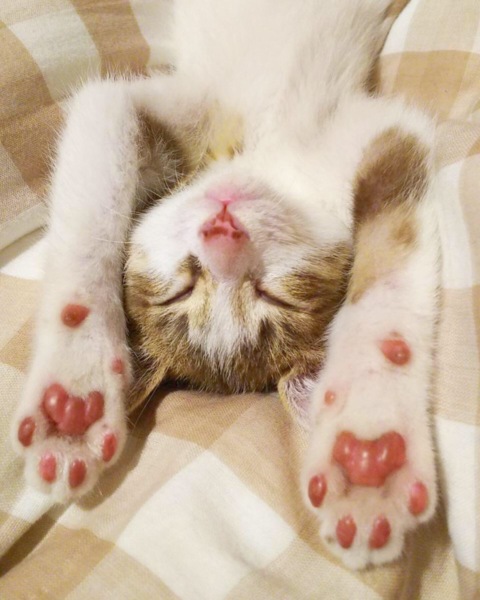 久しぶりにサイトを開いたので、報告続きます❤ 鈴太mamaからも報告ありました✨ 兎に角すごーく大人しくていい子だそう! 子供達に何されてもダラ〜ンとして、やられたい放題だし、寝る時に「寝るよーっ」って言うと一緒にお布団の所に来て川の字でねるし、何か要求する時には手でちょんちょんってするんだって(笑) うちき来た時には、お外の生活で肉球が火傷?してて黒っぽくなってカサブタがむけるようにガサガサだったけど、すっかりピンクになった肉球みてキュンとした一枚でした!