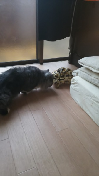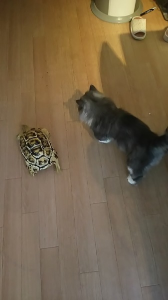 気温の低下と雨降りでベランダのお散歩が出来なくなったので部屋のなかでお散歩。 天ちゃんも一緒にお散歩?