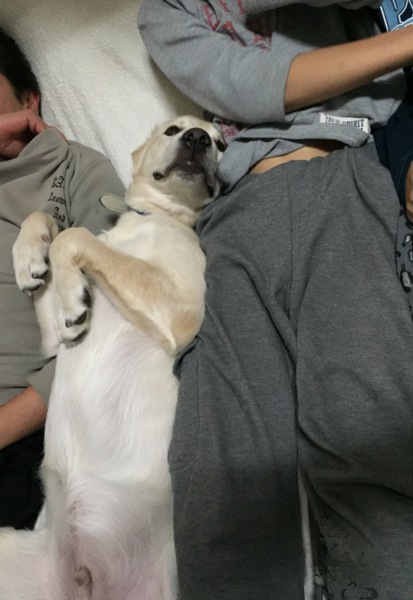 昨日だって、みんながソファーに座ってテレビを見始めると僕も僕もー!と文字通りみんなの中心に押し入り嬉しそうにソファーにゴローンとなってまちた。