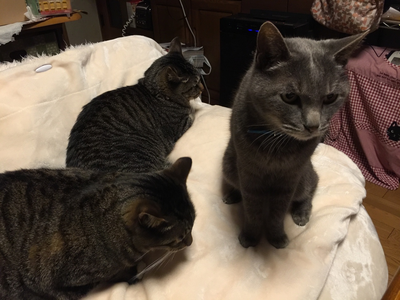 毎日の寒暖差に老猫達の体調を心配する日々。。。 すっかりお魚パーにハマり、最初は杏と雷だけで盛り上がり、今日はとうとう全頭勢揃い (; ̄ェ ̄) 仁義なきお魚パーだけど、、親分の物を奪う根性のある奴はいないが、、空気読めないテンは雷の皿を襲う(;゜0゜) それでも楽しいひと時、みんなでワイワイ食べれば食欲も湧いてくる! お陰様で杏も雷も体重が増え始めました (*^ω^*)
