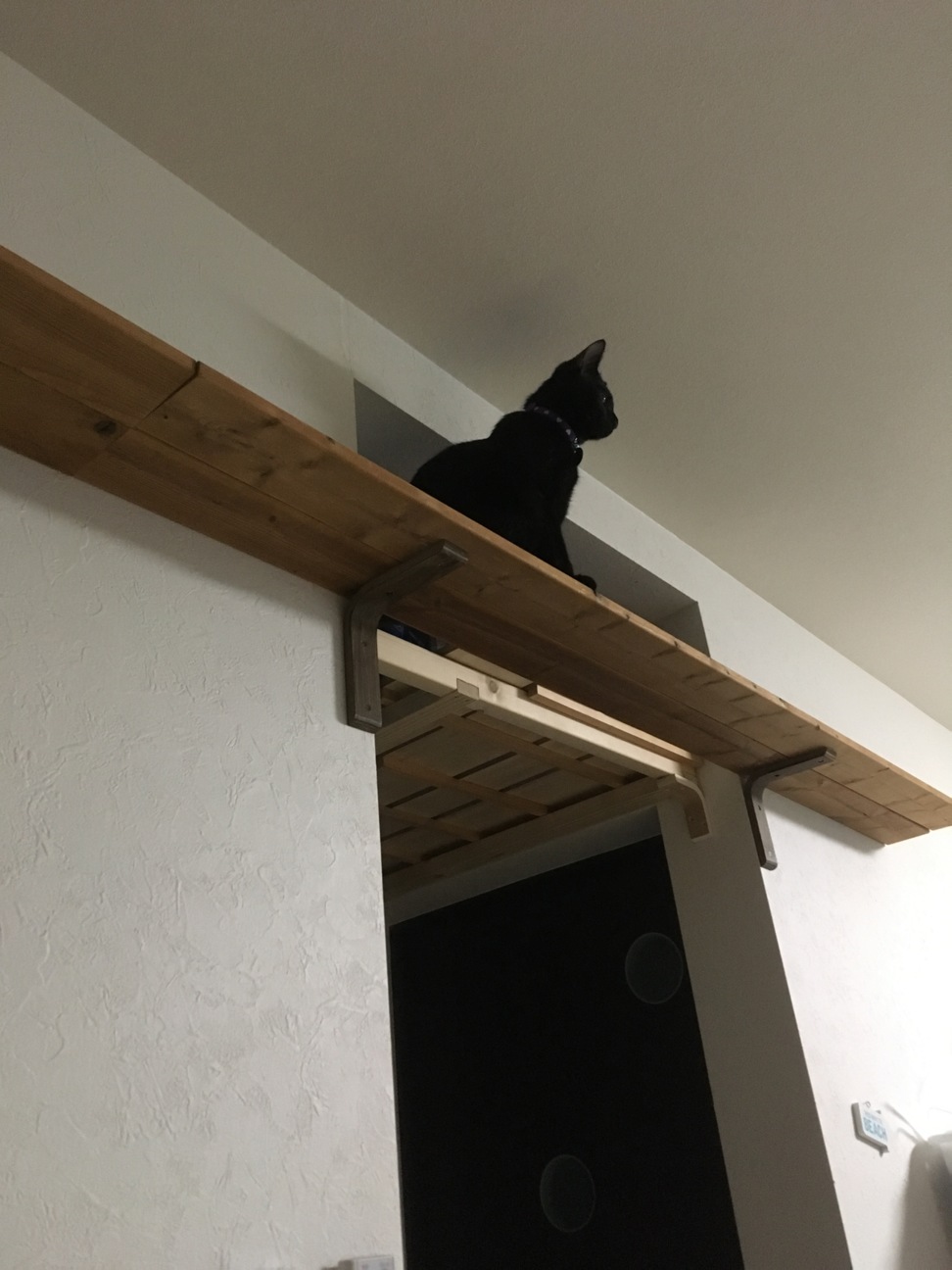 当然のことながら、彼は「母ちゃん、外のアレ何なん?僕は監視せなあかん思うねんわ。だからベランダ開けて」と言うので、猫ベランダの窓をネコ扉の幅まで開けておいたんですね。やや冷気が入りますが、ベッドの部屋までは届かないからまぁいいや、と。