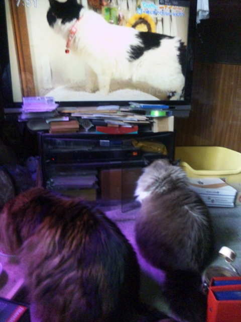毎朝見ている番組なのに、うにちゃんが猫タワーから降りてきて画面の前に正座して凝視するなんているのはこの時だけ。他の日他の猫にはまったく反応しませんでした。