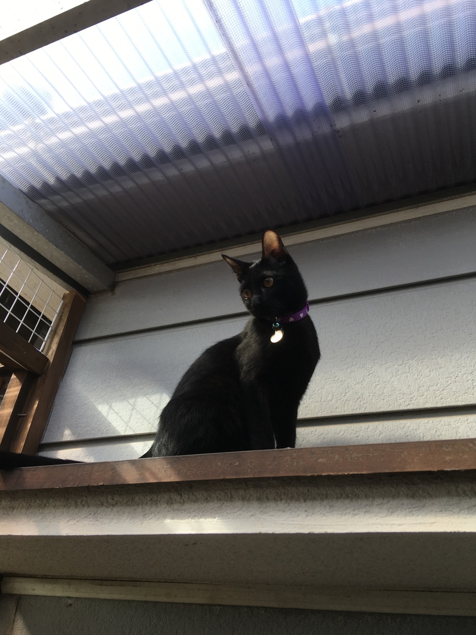 寒いけど頑張って少し風に当てさせようと、2階の猫用ベランダに2人だけ連れてきました。去年工事やるやるといいつつ、工程多すぎ、夫忙しすぎで猫ベランダはまだ工事途中です、冬になってもうたし。枠だけは作った感じで作業が止まってます。