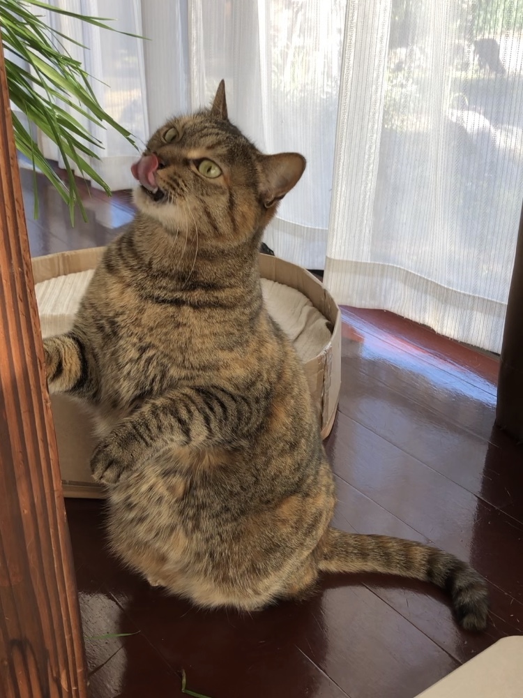 抱っこが嫌いで、両手で触ろうとすると手が届くか届かないかのギリギリのところまで距離をとったり、抱き上げると両手脚を突っ張ってぴゃ〜と叫ぶのも可愛かったですが、最近はふにゃにゃと小さな抵抗はするものの抱っこされても逃げずに落ち着いていたり、あそぼ〜、なでて〜と甘えてきたりして、可愛さがさらに増しています。