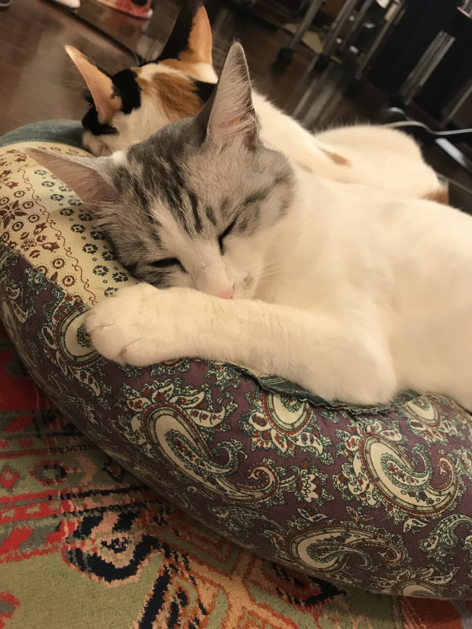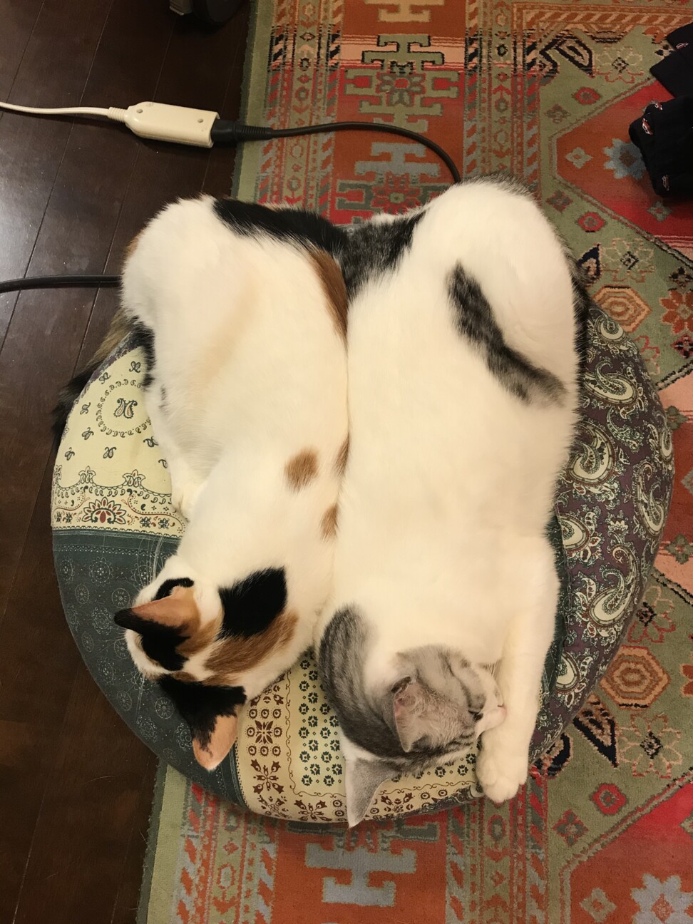 おっちゃんとわかめちゃんはたまにアシンメトリーで寝ています。
