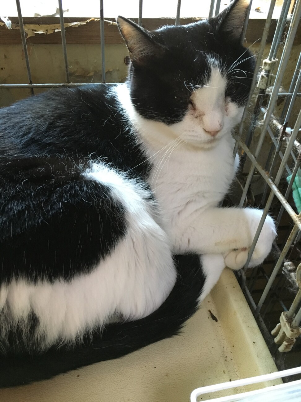 写真はながおさんが引き取り先に付いた直後。