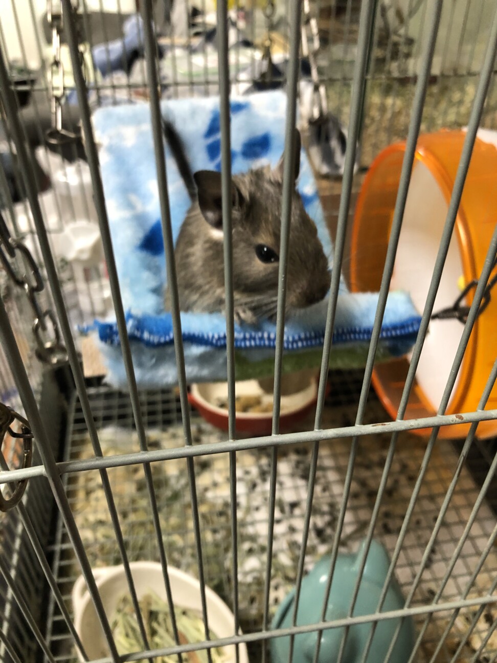 我が家に来た時はご飯をあんまり食べず隅っこにいましたが今はゲージを元気いっぱい走り回って沢山ご飯食べてすくすく成長中ー( ¯꒳¯ )