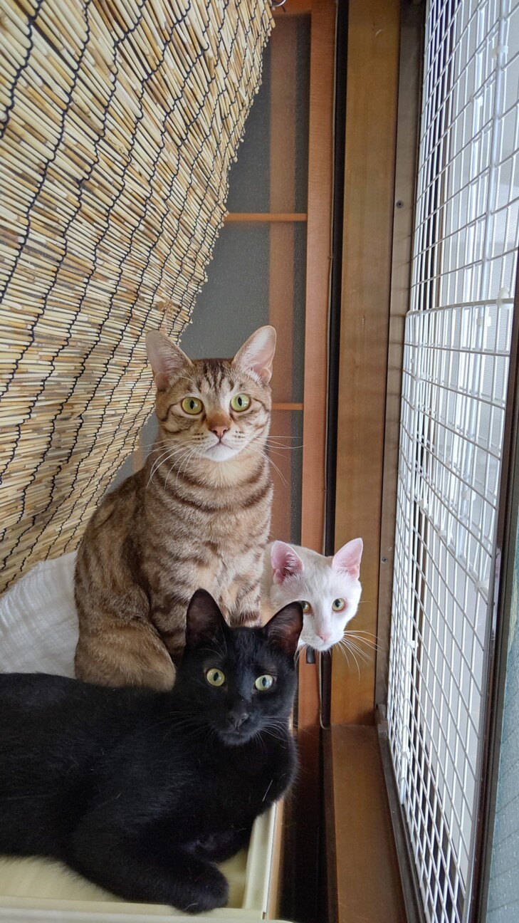 すだれを家の中に、外がよく見えるようになりました。 向かい側の家によく来る雀の鳴き声に耳を澄ませる猫たち。 もう少ししたら、ワクチンの時期。 くーちゃんは半年に1度の健診の時期。 今日は喧嘩ごっこで茶太郎が勝った! ちょっと自信ありげ。