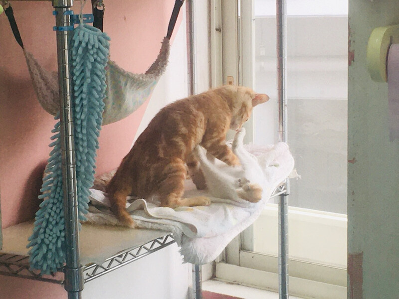 でも、お昼過ぎにチャトランお兄ちゃんのお耳が、なんか汚れてたらしくてお姉さん2人がかりで。お耳をお掃除されてましたニャ。