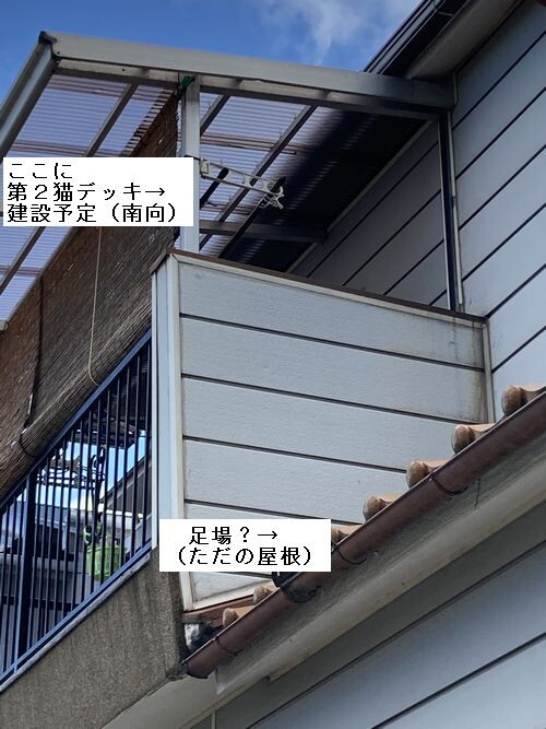うちの父ちゃんに「建設費用」として3万円渡したら、第2猫デッキ建設の流れになりそうで面白そうだから静観しております。私より休みの多い父ちゃん(←しつこい)が休みの度にせっせと材料集めをしていて、多分ご近所も(またあの家、何か始めるんか…)と思っておられるのではw