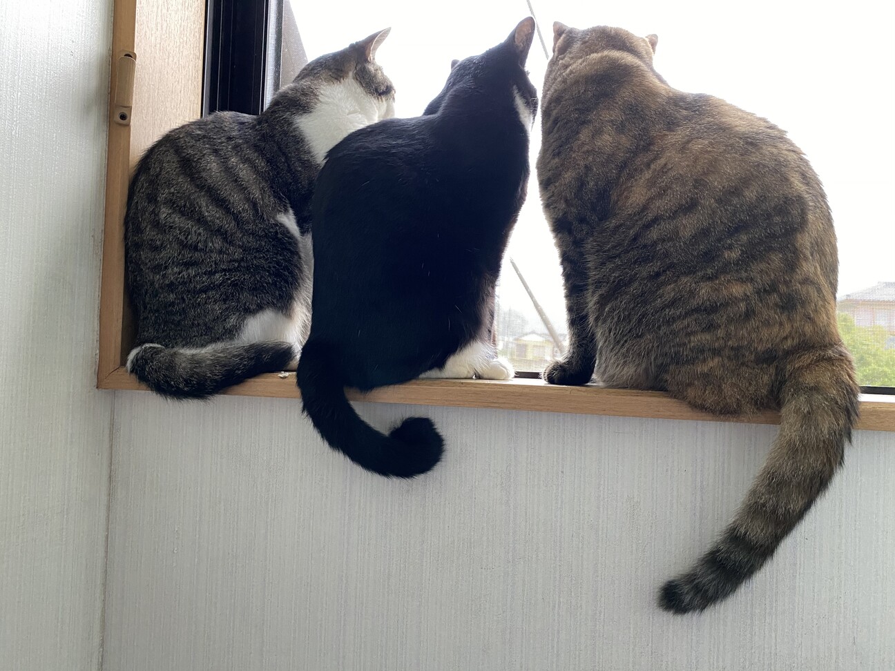 ネコたちはだいたい毎日、午前中から日向ぼっこをしながら夕方まで寝ていることが多いのですが、なぜか3匹のうちの1匹だけは寝ずにヒトの後をついて周り、遊ぼうとか撫でてとか、いろいろ求めてきます。