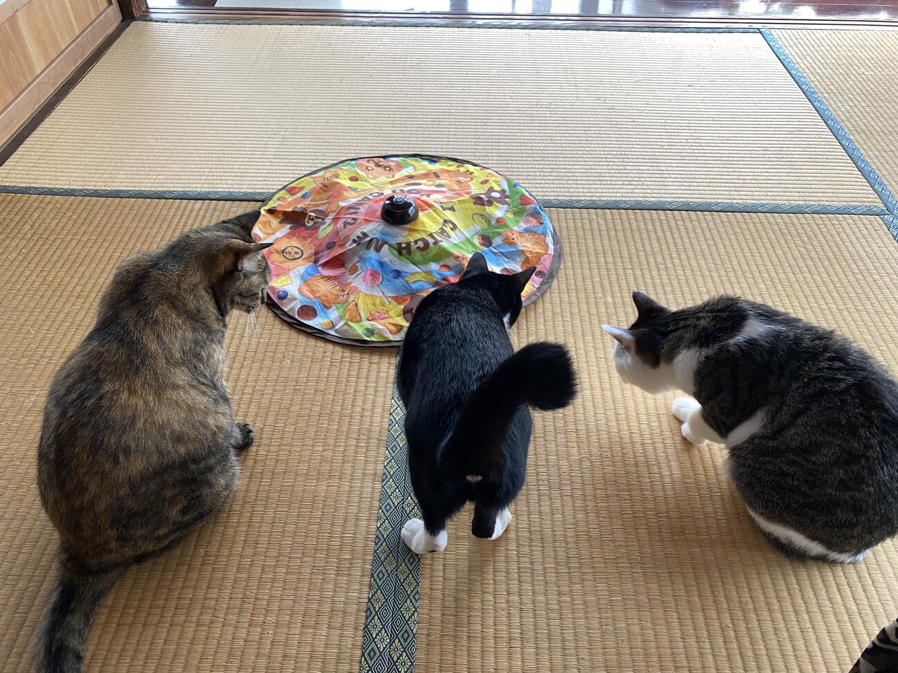 でももしかしたら、ネコたちは、ヒトのお守りをするために当番で昼寝の時間を削ってヒトの相手をしてくれているのかもしれません。