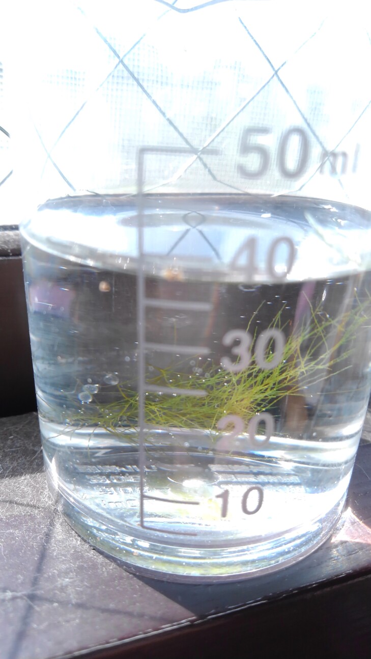 心動かなかったが、発泡スチロール水槽を見ている時に、アオミドロに卵が