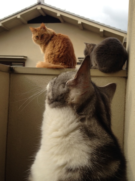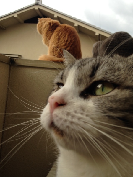ちゃいろちゃん 「ぴこたん、大きいからそこにいたら私ら隠れてしもて写らへんやん…(´・・`)」 そんなことを話しているみたいですね(笑)