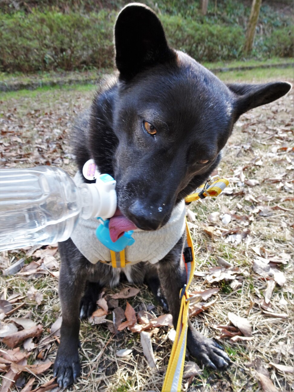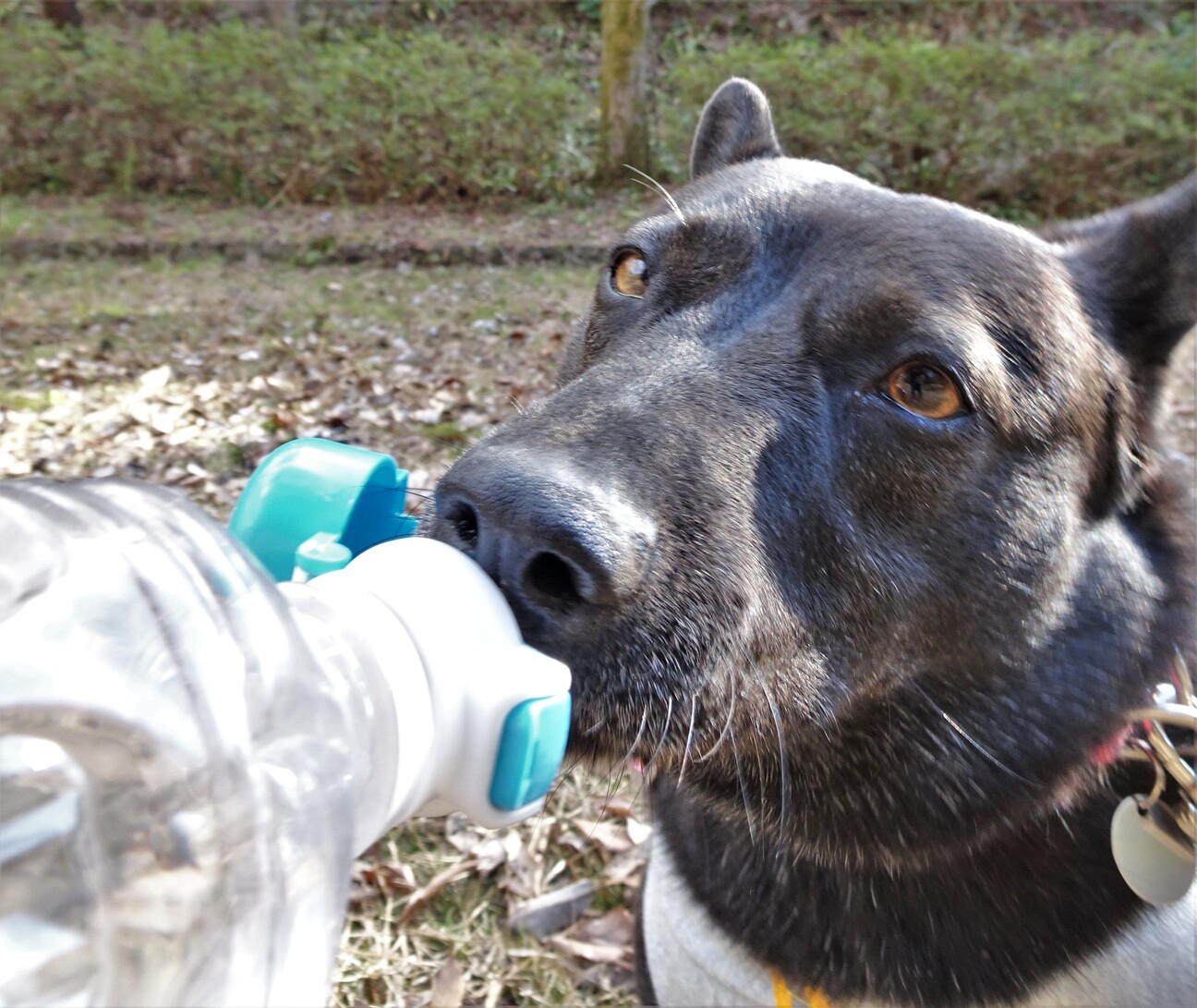 最近散歩中は水をボトルから直飲みするようになったぽんず嬢。