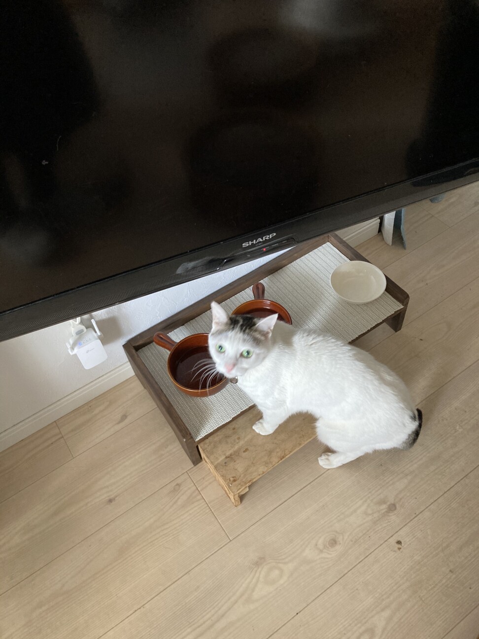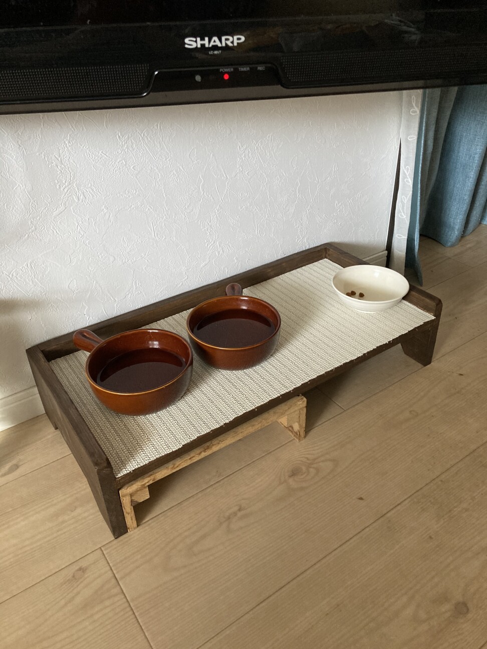 帰宅したら、素敵な犬猫用ご飯台が