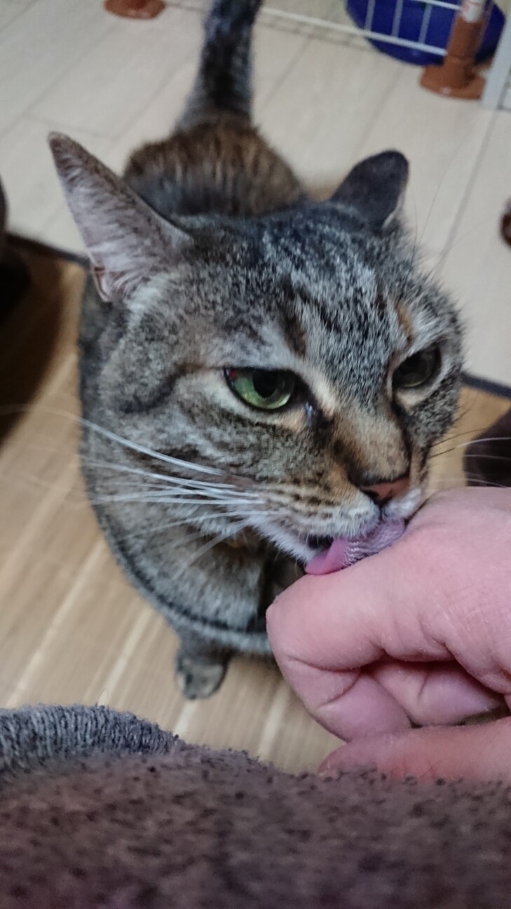 だけど、避けてもしつこく舐めようとする。しかも時には、普段は絶対に乗らない、膝に乗ってくれる(嬉)!!!