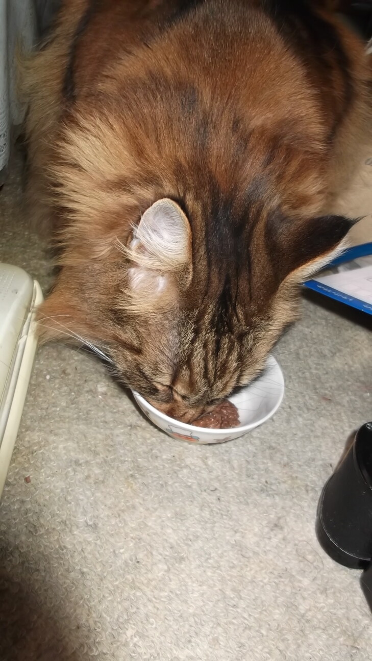 こういう時は今までの経験から胃の中に毛玉を滞留させ、食欲なくして今までの缶詰のトッピングがイヤになり、缶詰を食いつかなくなったという原因が考えられたので、トッピングをベルクさんだけビーフからチキンに変えると途端にお代わりするほど食べるように。