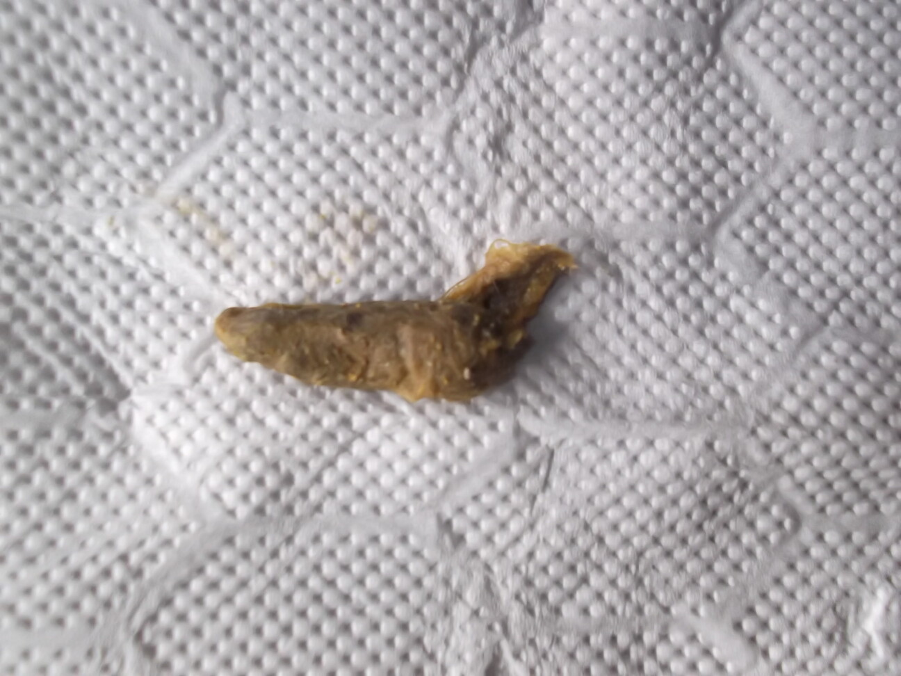 まあ、人差し指大の毛玉なんてベルクさんにしてみれば小さい毛玉なのですが、ラキサトーン与えられながら換毛期の間少しずつ固めた毛球なので、固く詰まったフェルトの塊のようなもの。