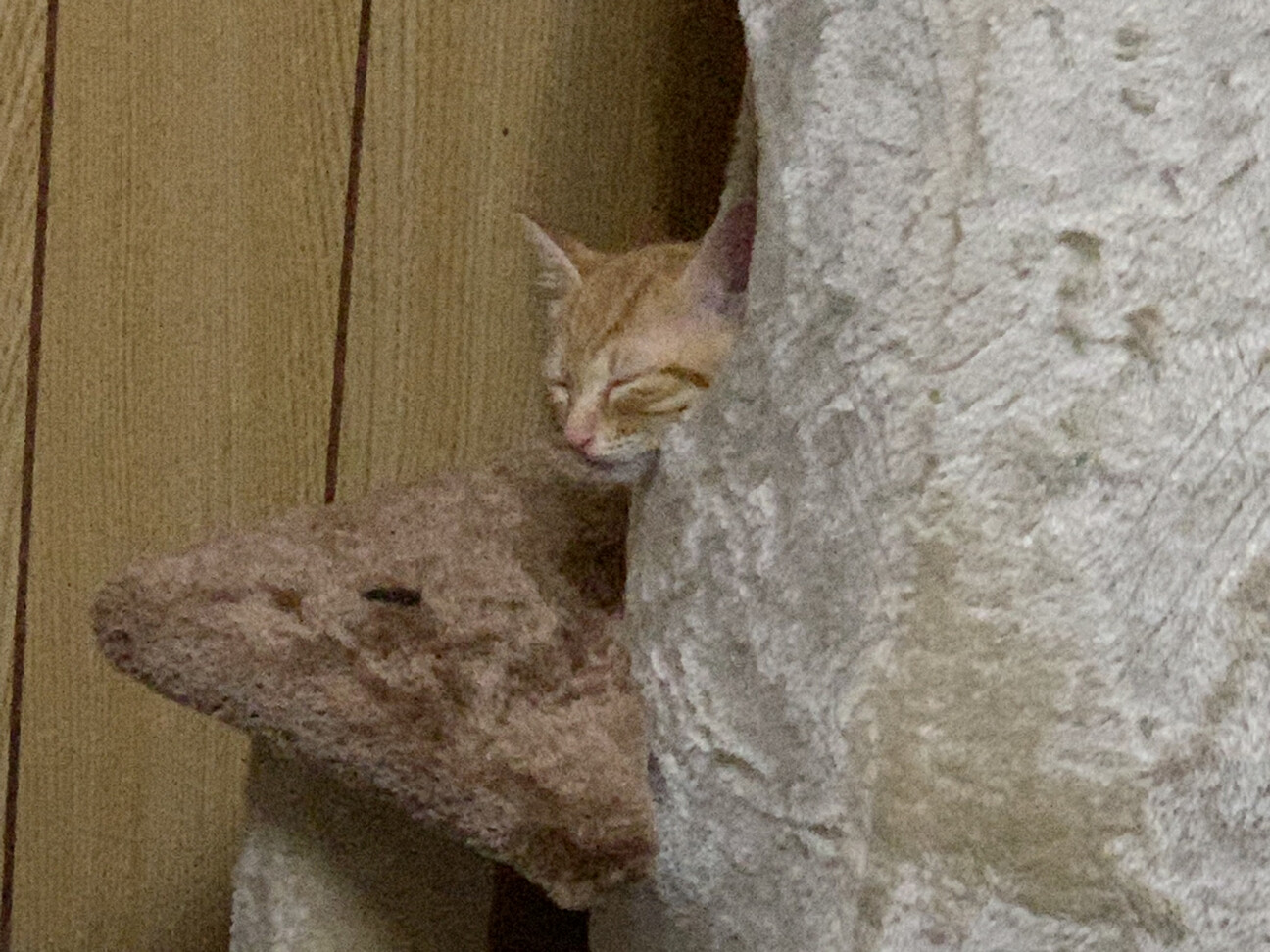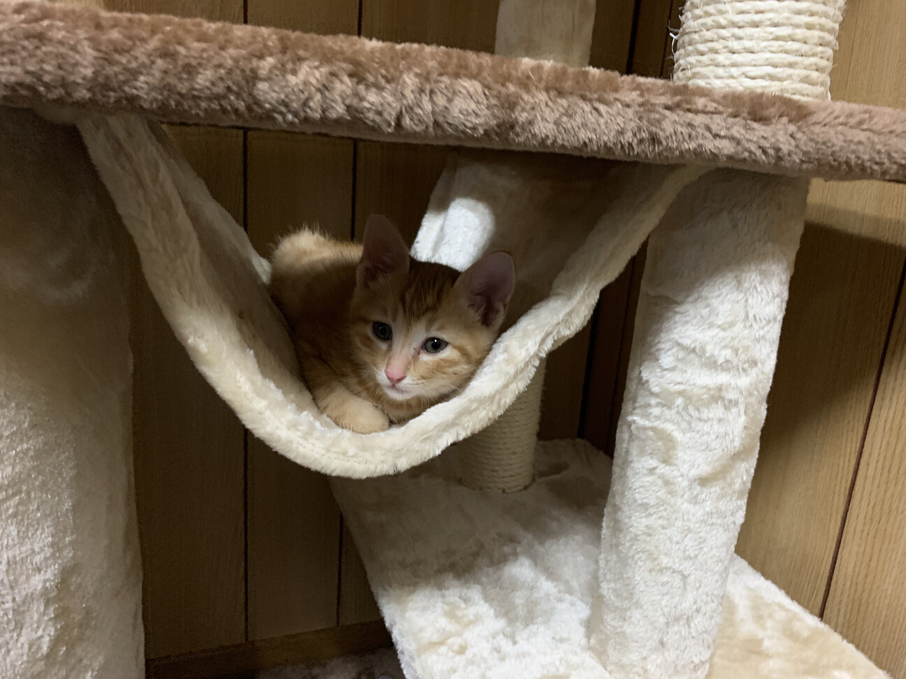 茶々丸くんはキャットタワーが大好きです。今日は3段目まで上っていきました。ハンモックが面白かったようです。遊び疲れたら穴の中でおねんねです。
