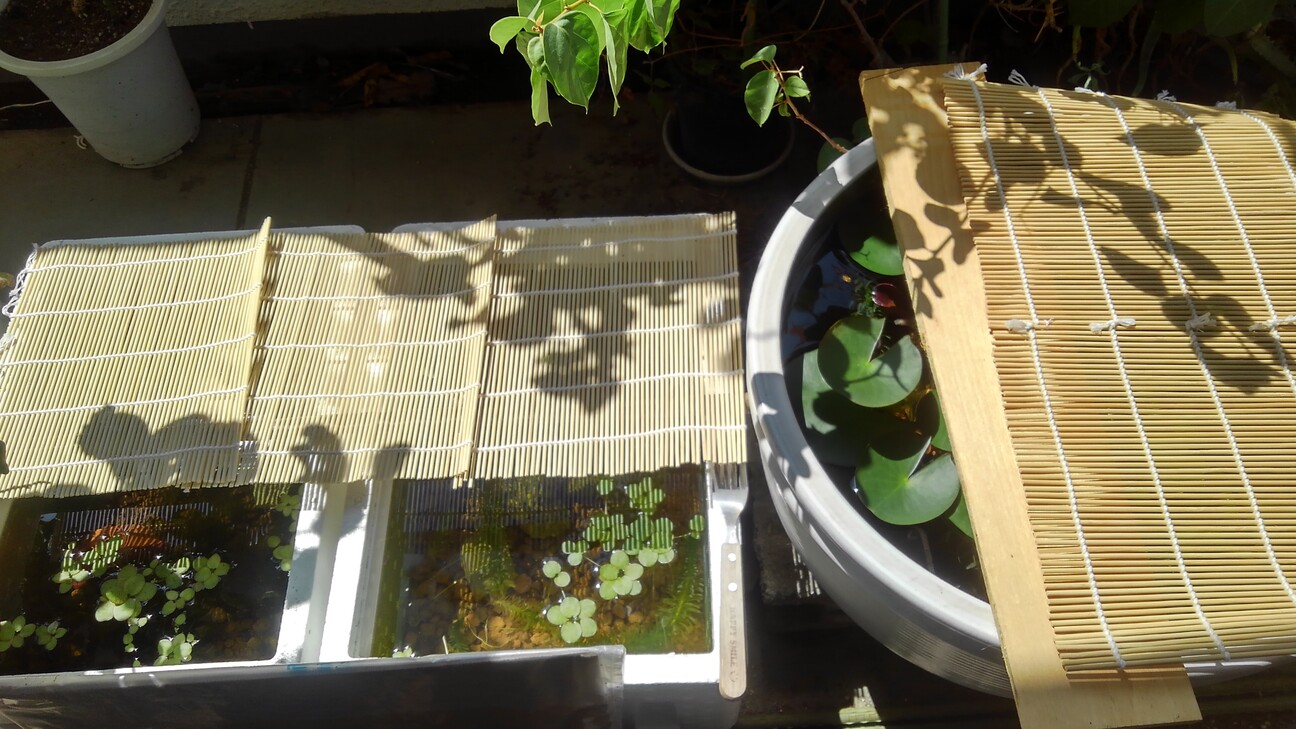 ‐現在は睡蓮鉢(ずっといる成魚)、発泡スチロール水槽①(♂の楽園)発泡スチ