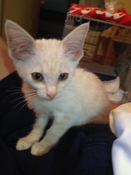 もう1匹ホワイトタイガーのような子もいるんですが、その子もガリガリで耳だけ大きくて子ぎつねのような顔でこれまたブサイクな子猫時代。