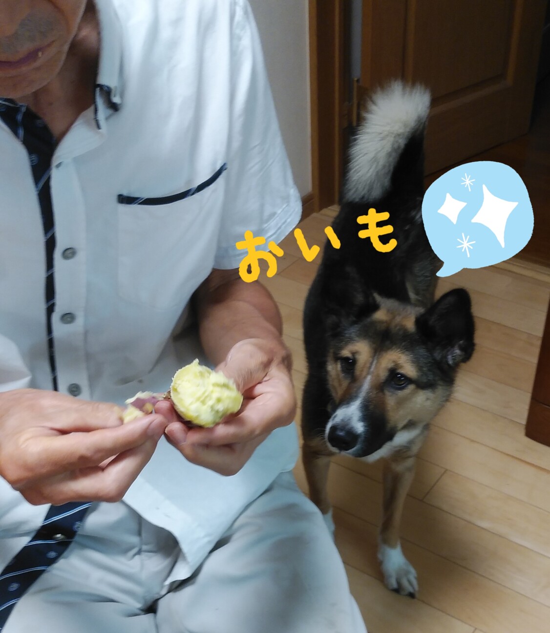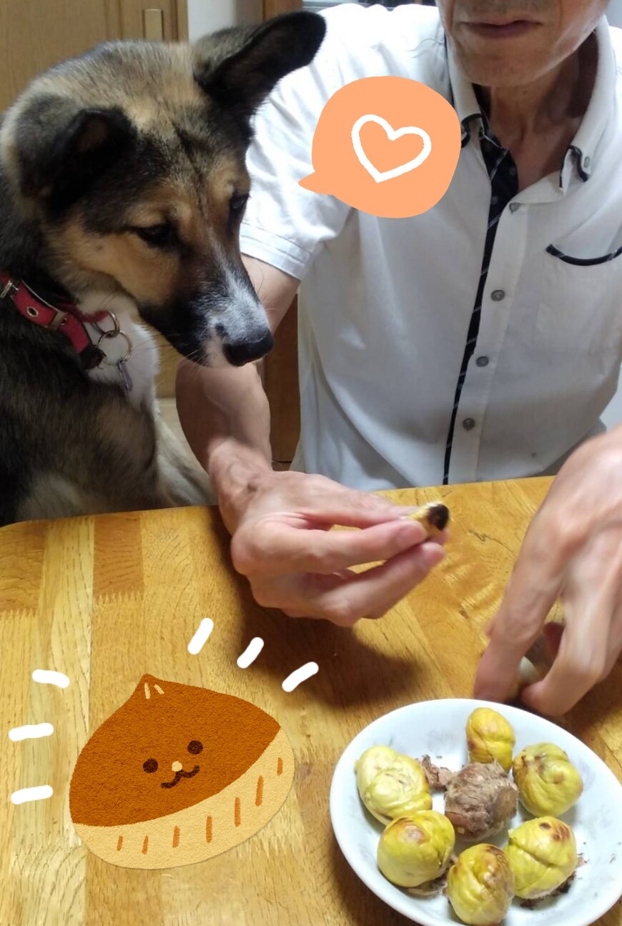 ばぁばにも張り付いてお芋さんや栗をもらっている。