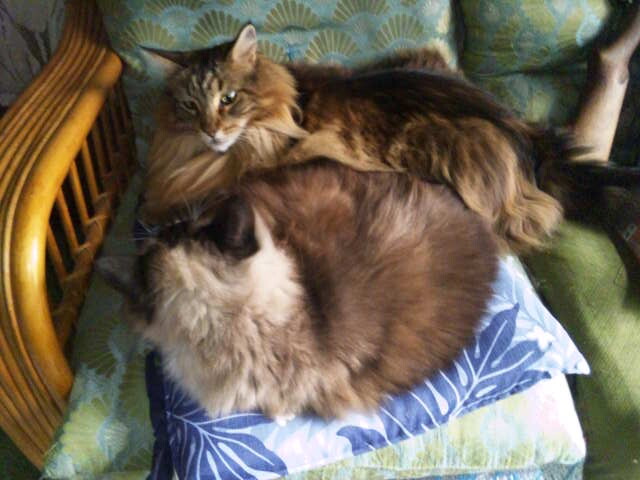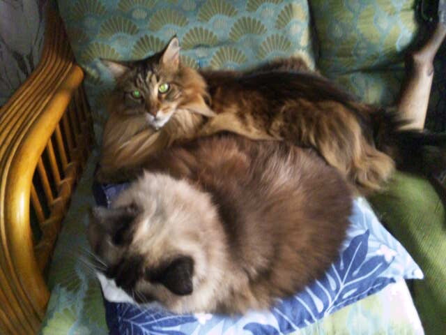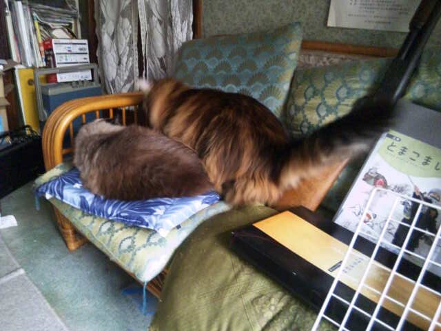 それでベルクさんも考えたもので、寝ているうにちゃんの横の隙間に強引に割り込み、たぶん嫌がるうにちゃんが堪え切れずに逃げ出すのを待って占有してしまおうという作戦。