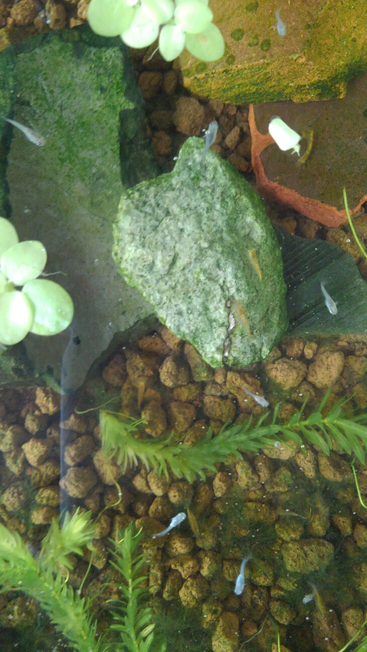 ‐7月に稚魚を次々発見し、隔離して飼育。うち2匹が今も生存(ブチちゃんと