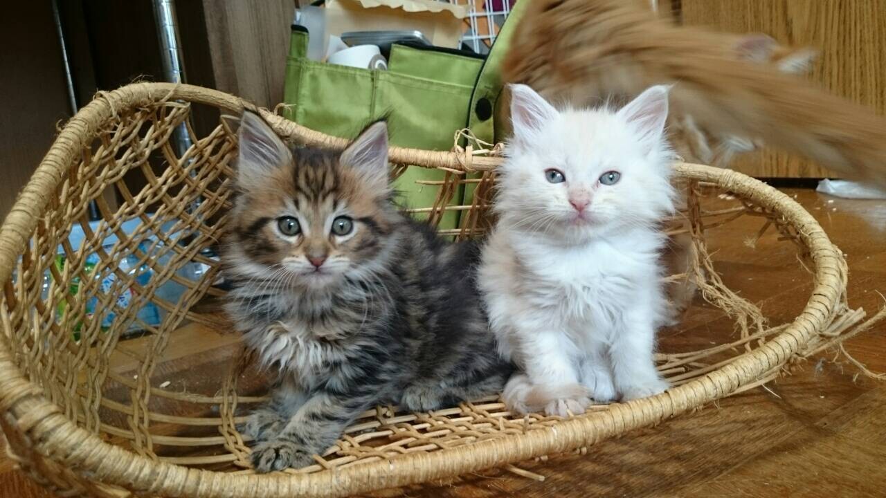 それで3枚目はブリーダーさんからのいただき画像でベルクさんと仲間(別腹)の生後30日過ぎた頃の画像です。離乳食はじめたころのこんなちっちゃなニャンが今や11kg? やはり腸活と筋トレ&ドライササミのおかげだったようです。