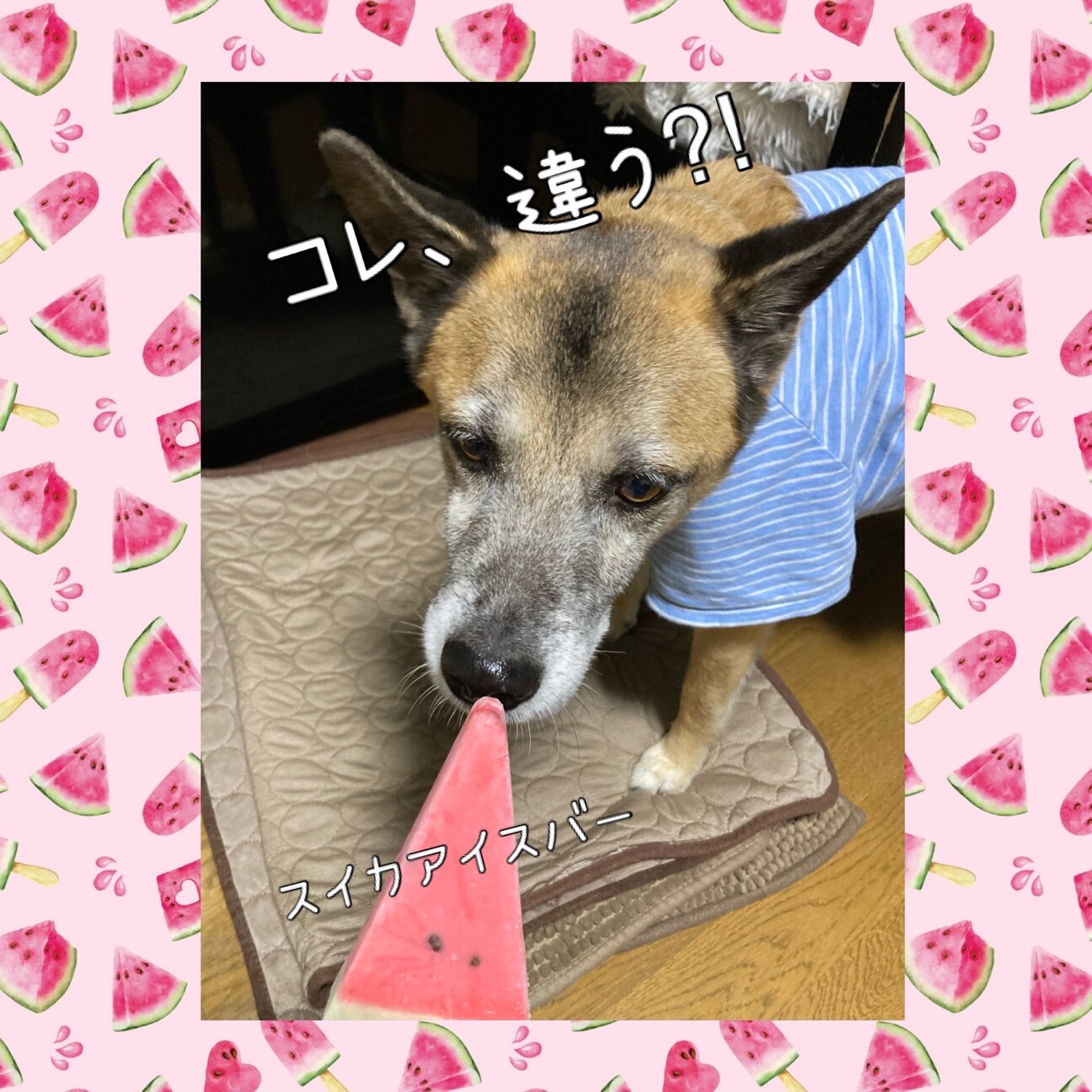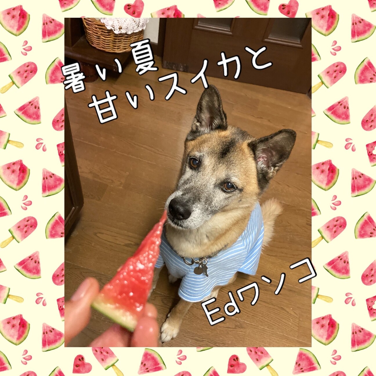 この間、ご近所さんからスイカをいただいて、Edワンコもおすそ分けをもらいました。