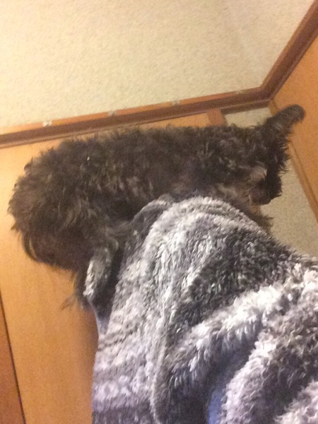 抱っこすると、肩に登ってきます。