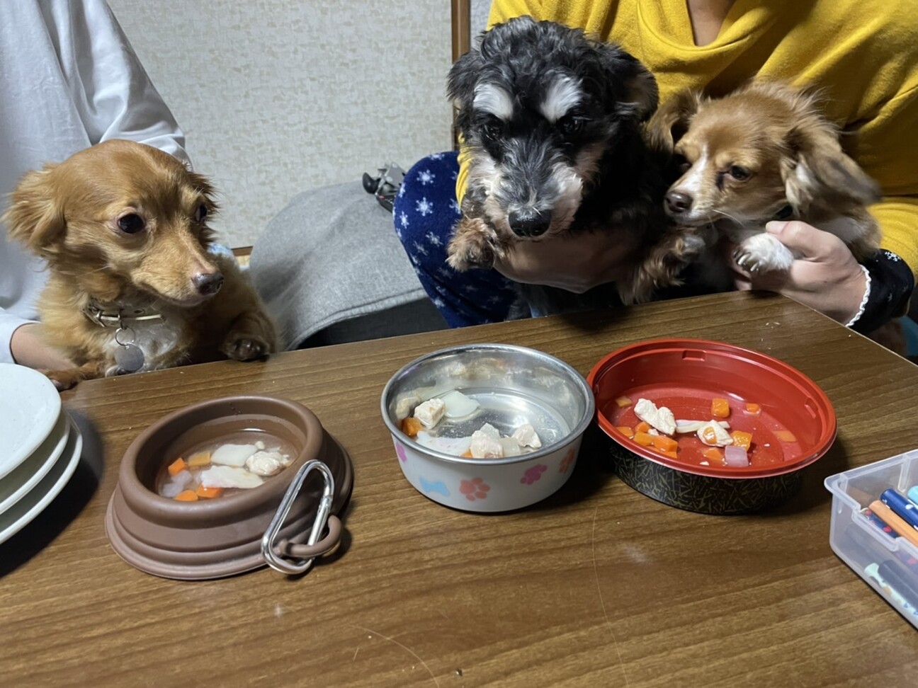 家族が増えますます賑やかになりました。 元気いっぱいですごせますように。。。 お雑煮は1パックにちょうどお餅が3つ。 仲良く分けっこ♡