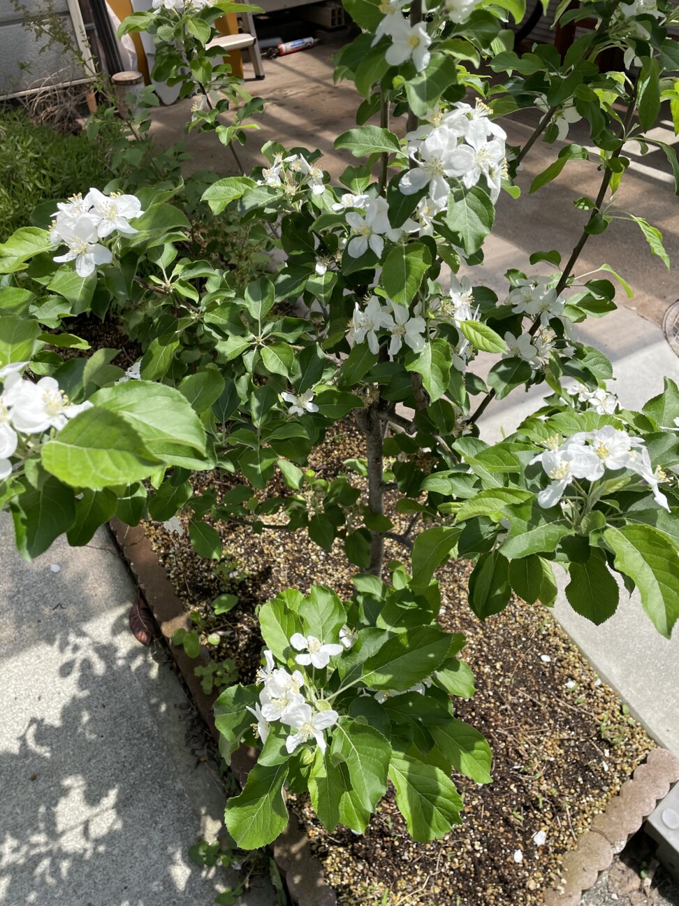 玄関先の東北北海道コーナー、リンゴの花が満開になりました。昨年は結実2個だったので、今年は何個出来るのか?楽しみです(^^) ライラックももう直ぐ咲きそうですし、ラベンダーも放ったらかしの割に根っこが強くて葉っぱがモリモリ出てきました。