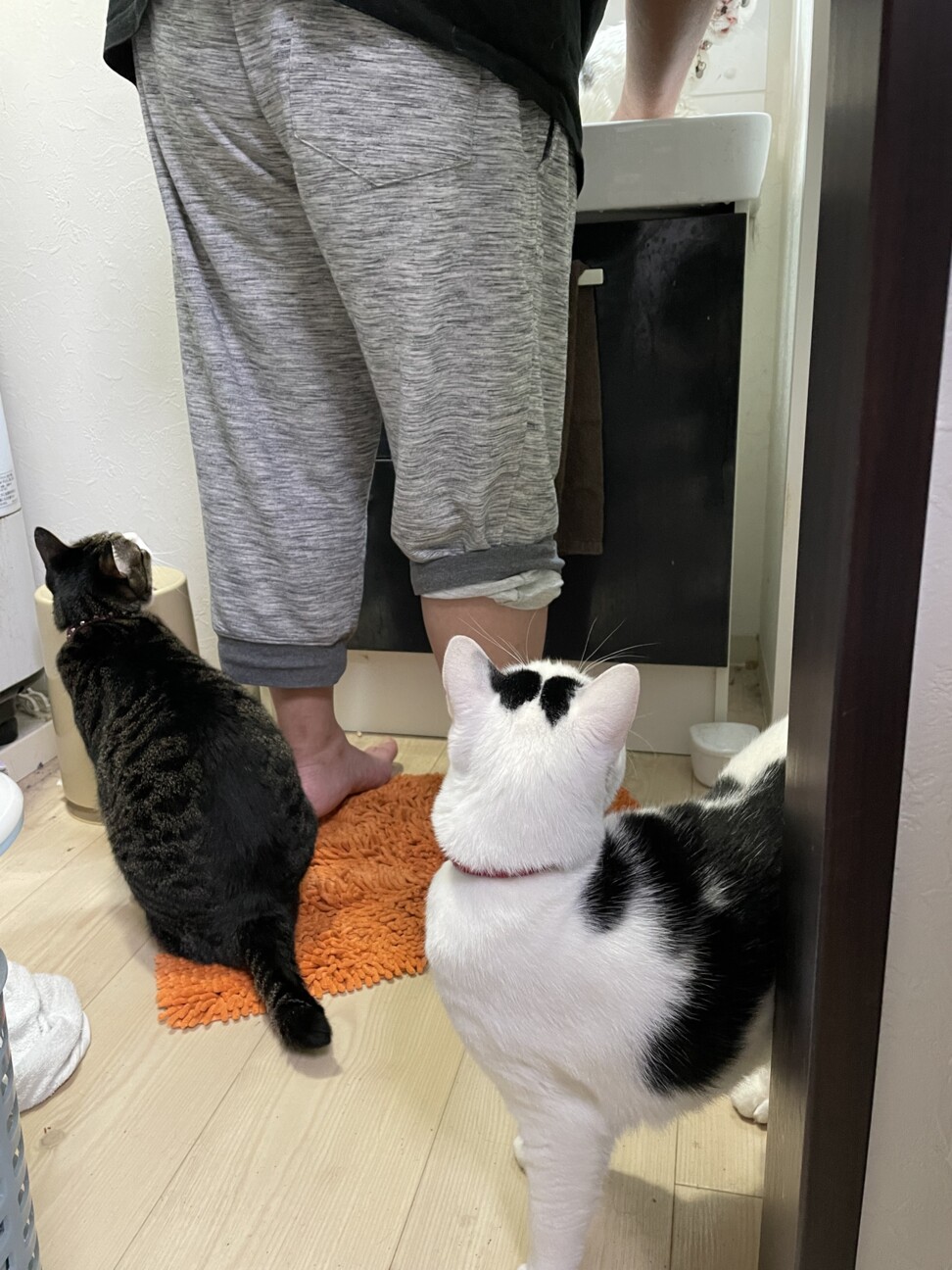 昨夜は父ちゃんがユズコさんをお風呂に入れてくれまして、そもそも我が家の猫たちは全員お風呂好き(笑)なーんも問題ありません。昨日は洗面台で洗ったのですが、弟妹たちがソワソワしております…ななな何してるの…と。