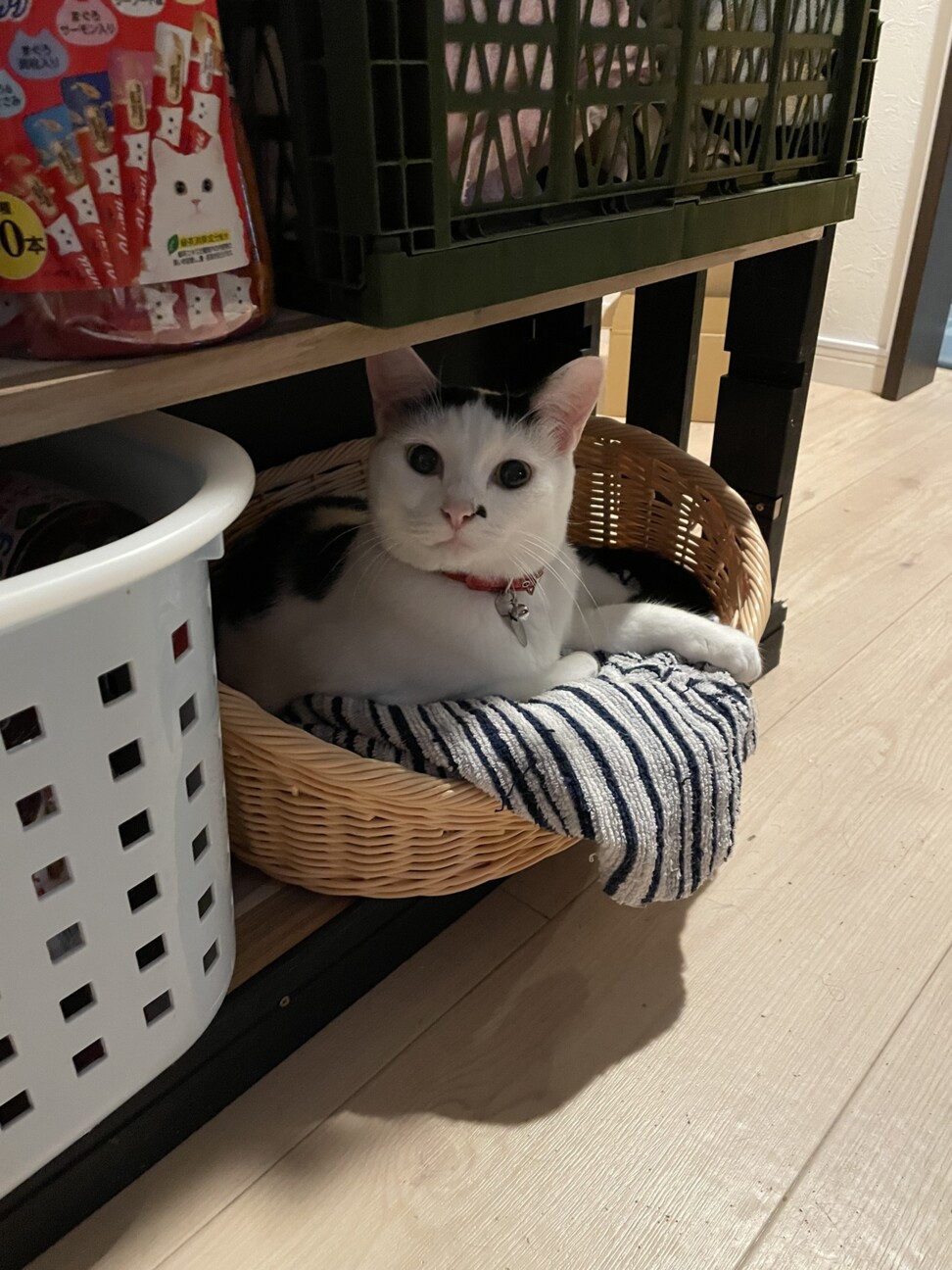 母ちゃんたち一生懸命アレコレ作ったけど、アンタのお気に入り寝床はそこなのね。わかるよ、猫に対して「これいいでしょ!」と人間の都合を押し付けてはいけない事を。それにはなんの意味もなさない事を。猫はmy bestを自分で見つけるし、使い方も自分で考えて行動する。それでいいねんで。むしろそういう猫の方が強いのだ。