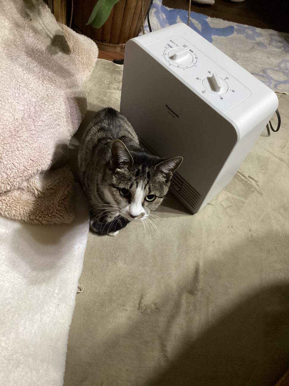 ノアちゃん 寒くって温風機を独り占めしていたのに…