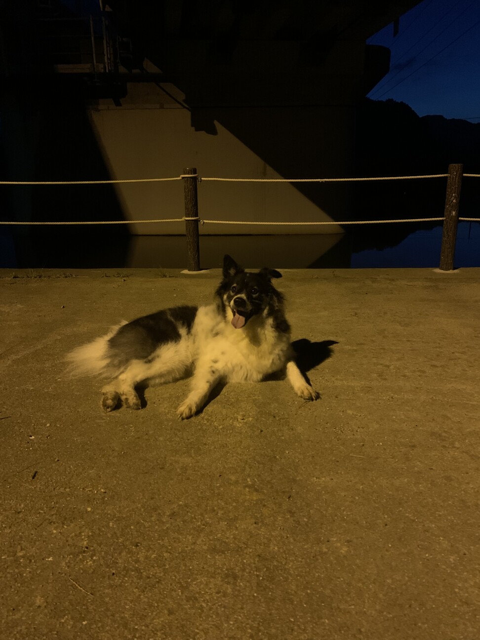 2枚目:夜の捜索後 お疲れのコタ。20:00過ぎてもお外は暑いです:( ;´꒳`;)