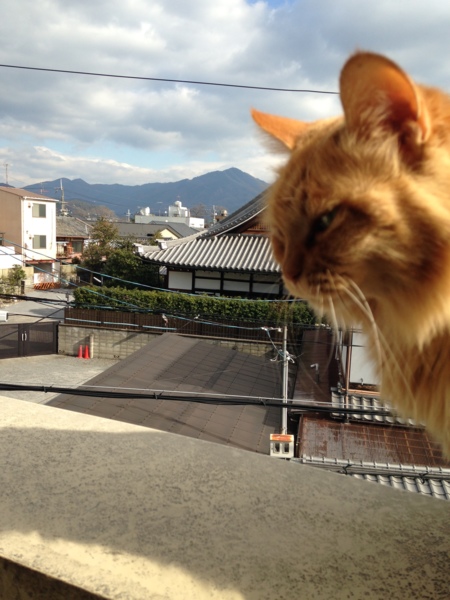 「皆様、あちらに見える山が霊峰 比叡山です。」 ちゃいろちゃんが案内してくれているみたいです(^^)