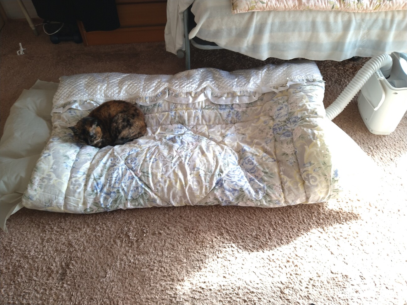 しばらく使ってないお布団を布団乾燥機にかけてたら、ビーちゃんが乗ってた ( ´艸`)