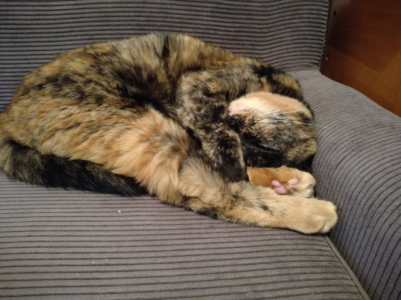 こんなに小さい猫でも、(助走無しで笑)1メートル以上の高い所に飛び上がったり、1メートル以上離れたベッドからチェストに飛び乗ったり、また、多少顔やお尻や背中を打ったりしても、何ら平気なところが、畏怖を感じる・・・
