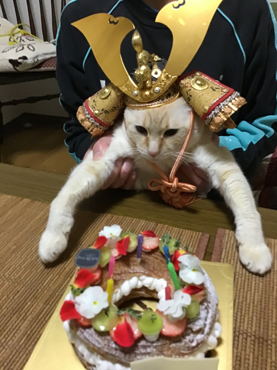 (毎度、人間用のお祝いの品ですが・・・) つゆ吉が6歳のお誕生日を先月迎えました。 早いものです。 パパッチが「武将のように強くなれ!」と今年も、節句飾りの兜を無理やり被せられて・・ 毎朝、パパッチ殿様を、全体重をかけて起こすというお役目、従順にこなしているつゆ吉殿 歳を重ねて、少し性格がやわらかくなりつつある姉上・ゆづ樹とともに、毎日健康に暮らしてくれてます。 先日は、保護主パパさん&ママさんとの久しぶりの再会も果たして、たくさんのみなさんに可愛がっていただいているつゆちゃん。 これからもたくさん、たくさん、笑わせてくださいね。 いつもありがとう